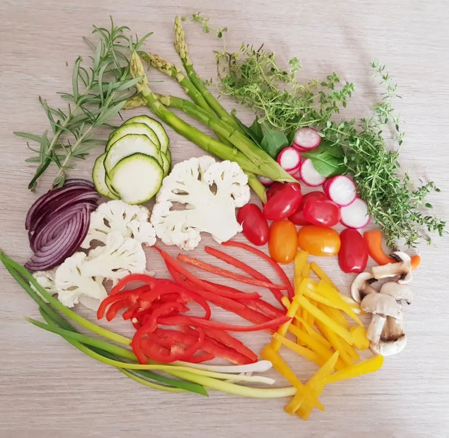 - Gemüse und Kräuter nach Wahl gewaschen und geschnitten