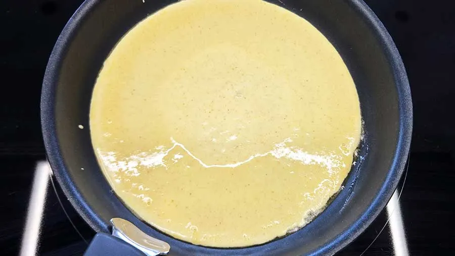 - Proteinpulver mit Wasser glattrühren, mit Ei und Salz verquirlen und mit Gewürzen verfeinern.