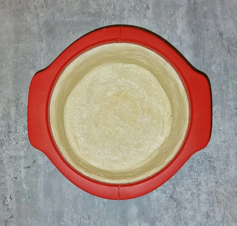 - Den Teig zwischen zwei Blatt Backpapier mit Hilfe von Bambusfaser ausrollen und die Backform bis 1 cm vorm Rand mit Teig auskleiden. Boden einstechen.