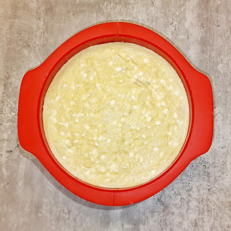 - Ich hatte eine 23 cm Backform, es geht aber auch eine 26 er oder 28 er. Bei einer größeren wird der Kuchen nur nicht so hoch.