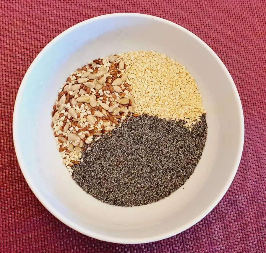 • Ein Laibchen formen und mit Saaten oder Bambusfaser bestreuen.