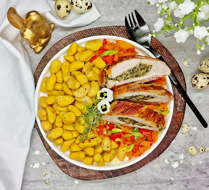 - Beispielrezept mit gefülltem Karree auf Gemüsebeet gibts in der Facebook-Kundengruppe (KLICK)