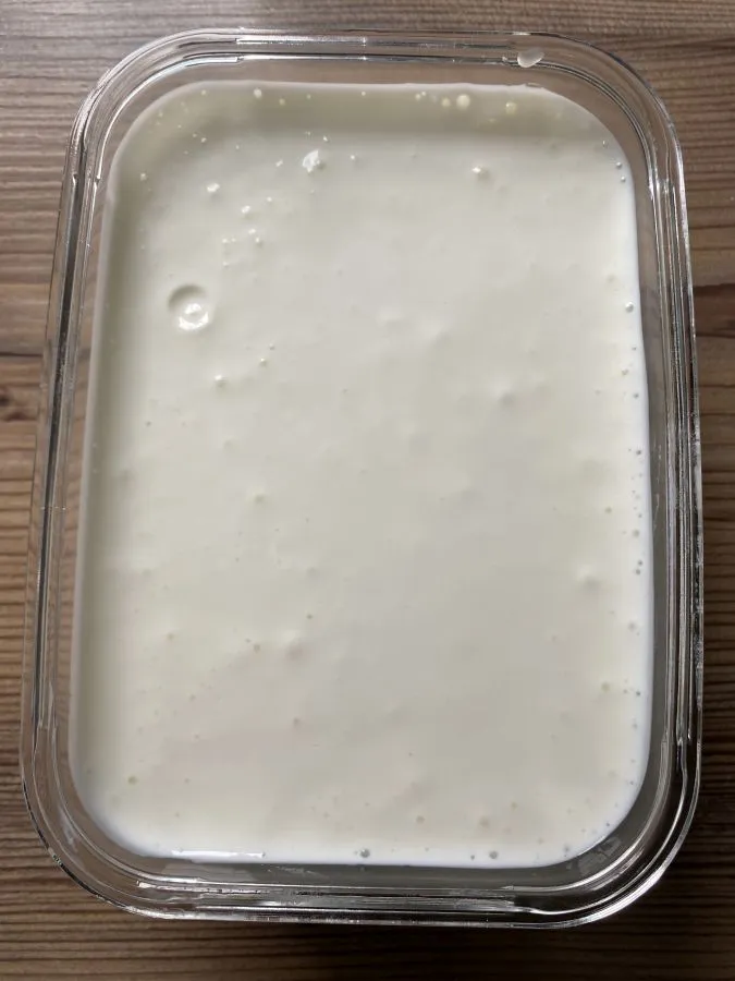 • Den Teig in die Glasschüssel geben und am Boden verstreichen.