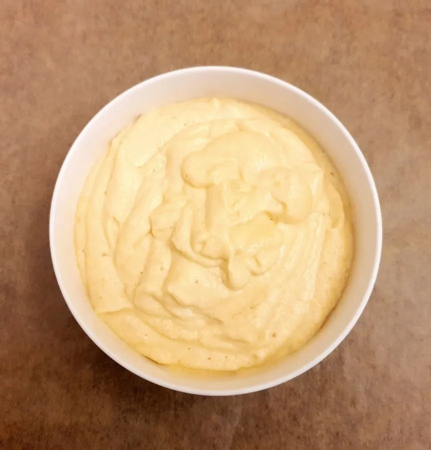 • Eischnee und Mandelstaubmischung sehr vorsichtig mit einem Löffel unter die die Eigelbmasse ziehen.