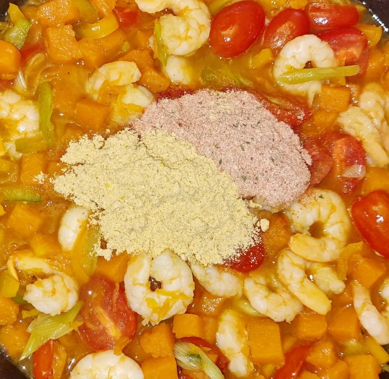 • Rezept Kürbissemmelrolle mit Kürbis Garnelenpfanne low-carb keto glutenfrei