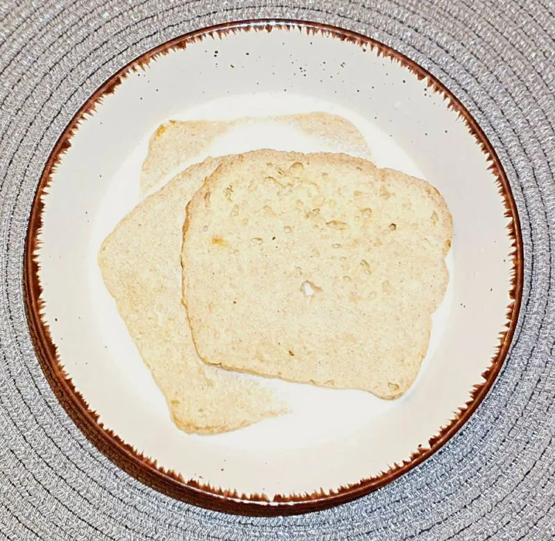 - Toastbrot in warme Milch einweichen.
