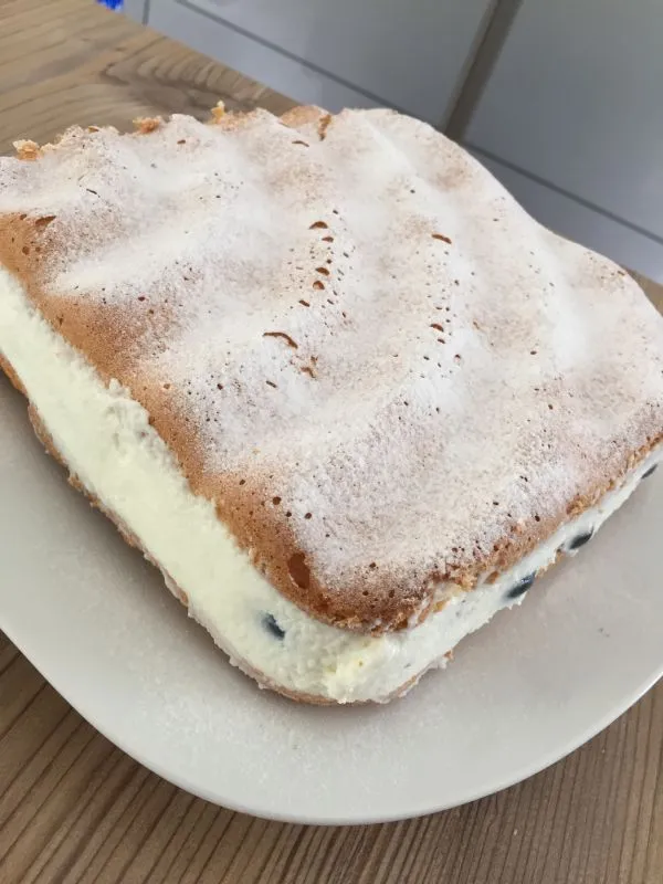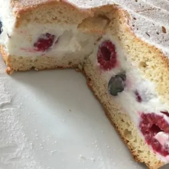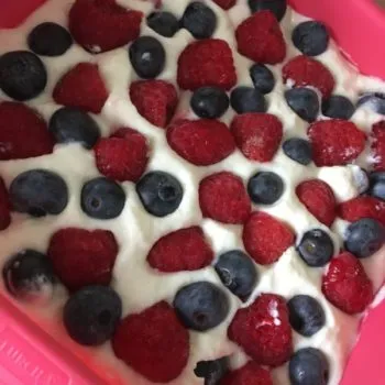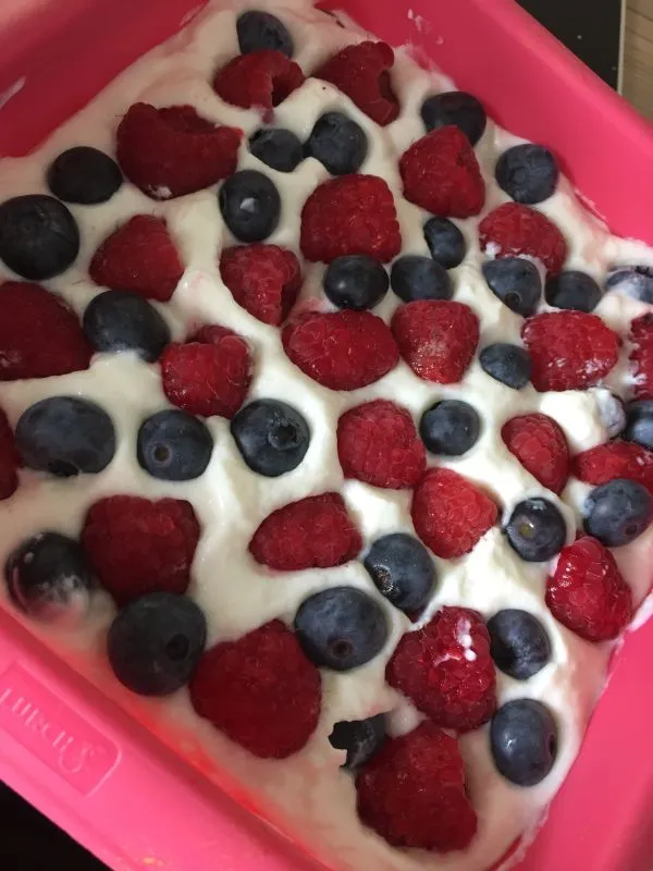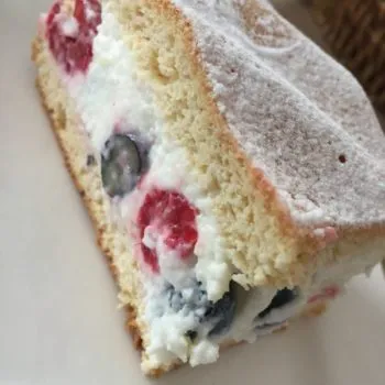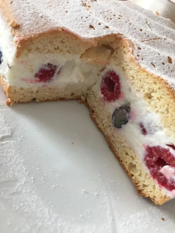 Heidelbeeren und Himbeeren mit Joghurt und Skyr - eingebettet in einen fluffigen LowCarb-Biskuit - wenig Kalorien - viel Eiweiß - wenig KH!