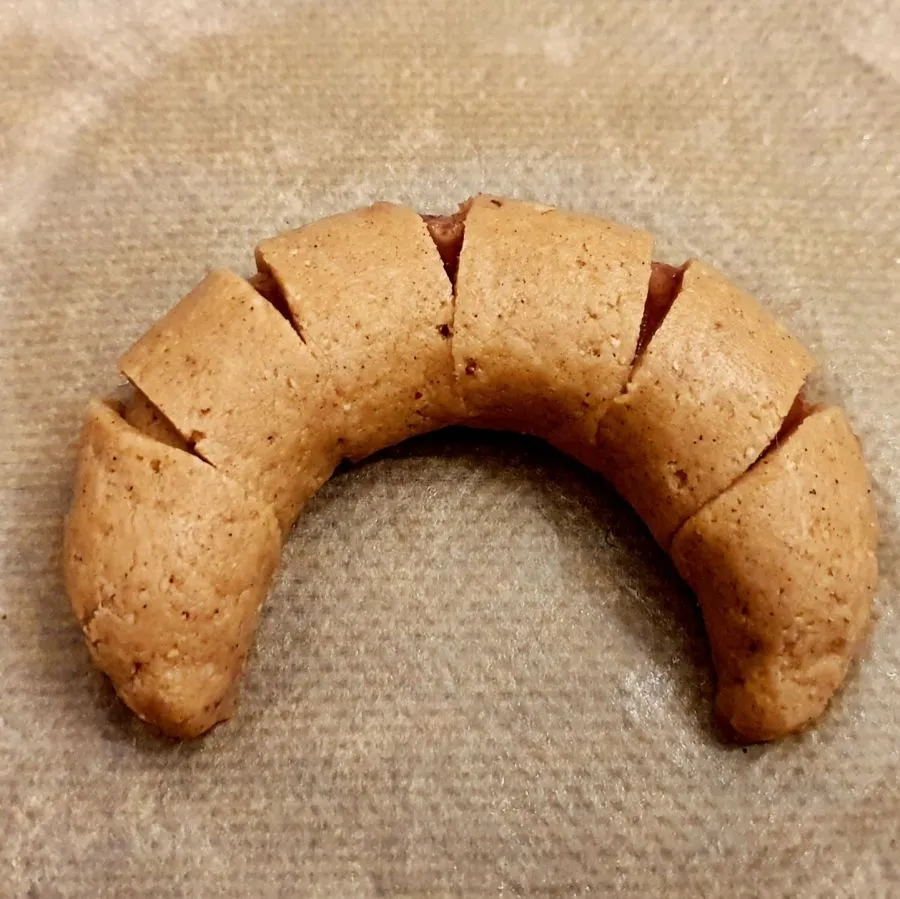 - Aufgerollt dann zu einem Hörnchen formen, die Enden verschließen.