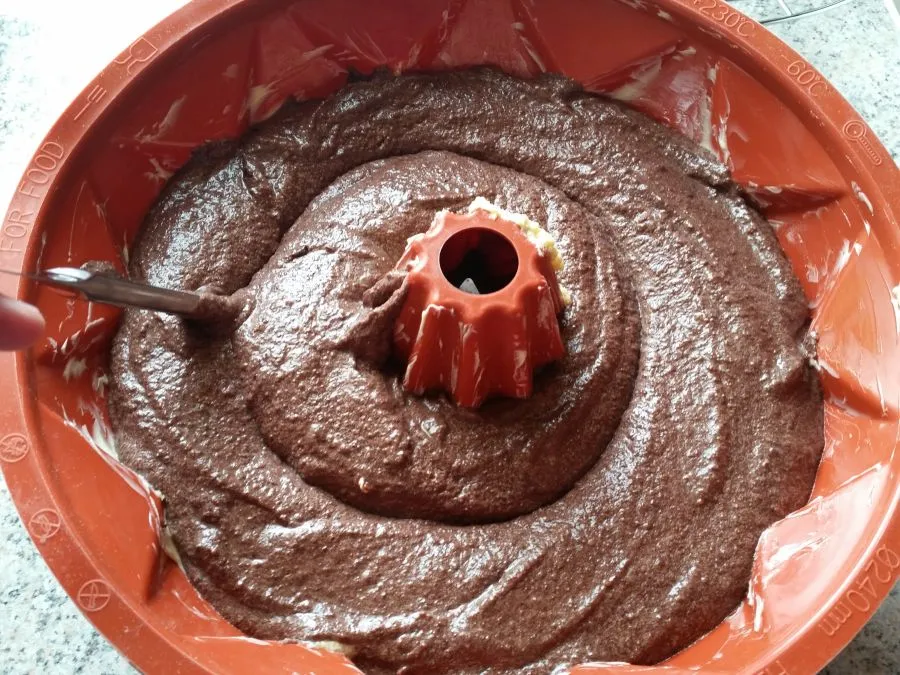 - Marmormuster: Variante 1: Die Hälfte des Teiges entnehmen und die andere Hälfte mit dem Backkakao verrühren. Anschließend abwechselnd in mehreren Portionen in die Form schichte. Variante 2 (Mokkavariante): Ein Drittel des Teiges in die Form füllen. Den restlichen Teig mit dem Espresso verrühren und die Hälfte davon über den hellen Teig schichten. Das letzte Drittel Teig mit Backkakao verrühren und darüber schichten.Bei beiden Varianten: Zum Schluss mit dem Stiel eines Buttermessers durch den Teig fahren (bis ganz nach unten) für das typische Marmorkuchenmuster.