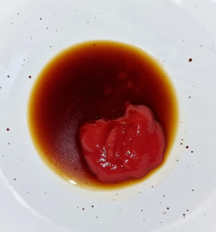 - Für die Sauce Worcestersauce, Oystersauce, Sojasauce und Ketchup vermengen. - Man kann um KH zu sparen auch nur Soyasauce nehmen, schmeckt auch.