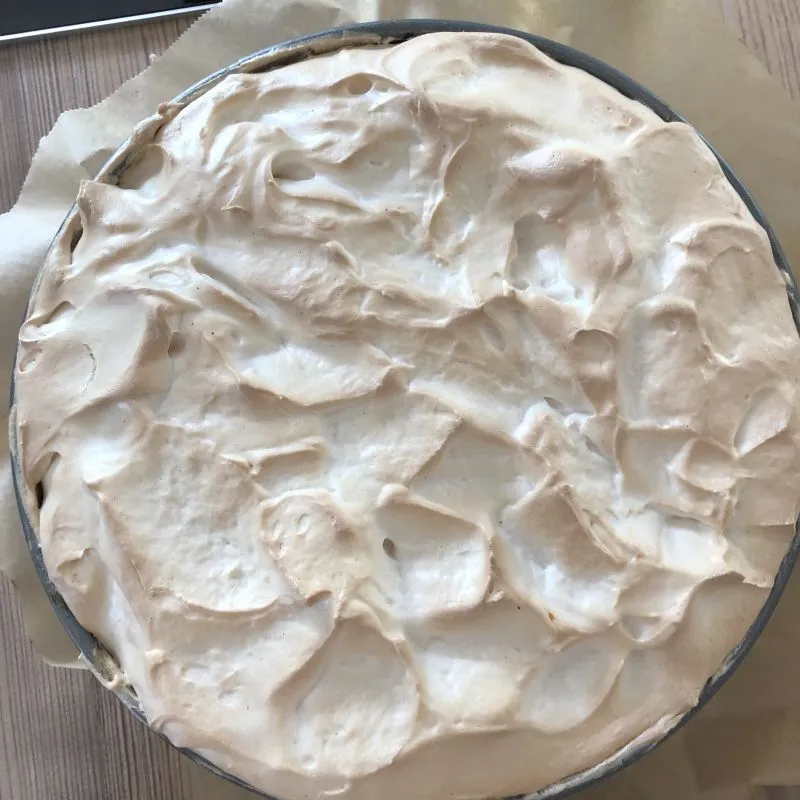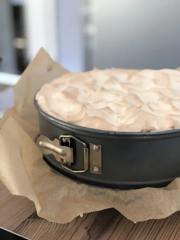 - Kuchen sofort wieder ins Backrohr geben und Hitze auf 150 Grad reduzieren. Ca. weitere 20 Minuten backen. Der Baiser wird dann oben etwas braun und die Masse stabilisiert sich!