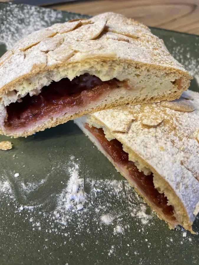 Taschen aus einem reichhaltigen Mandelteig mit einer fruchtigen Füllung aus Pflaumencreme und Vanillepudding! NUR 4g Kohlenhydrate pro Stück!