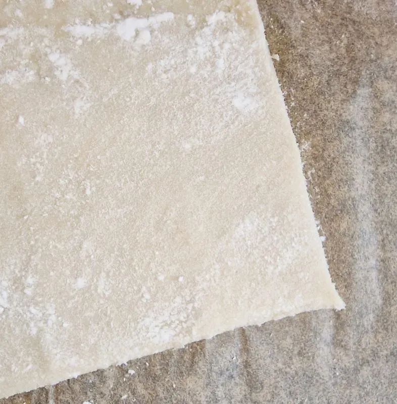 - In der Größe der Form zuschneiden. Ich hab 6 Platten zubereitet.