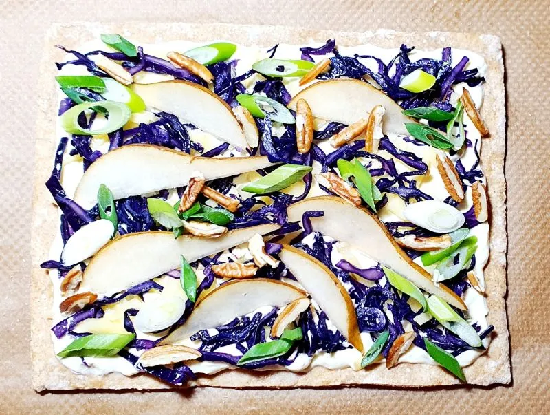 Rezept Rotkraut Birnen Flammkuchen lowcarb glutenfrei