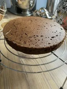 - Torte 2-3 Stunden in den Kühlschrank stellen, damit Marmelade in Kuchen einziehen kann und gut abkühlt.