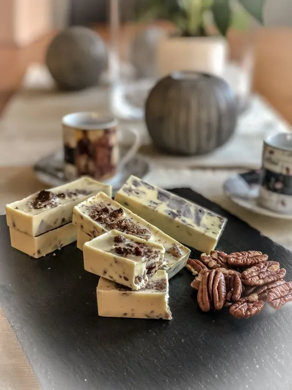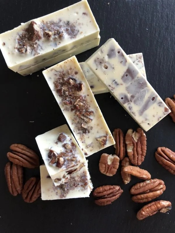 Rezept Schokoladenriegel weiß mit karamellisierten Pekannüssen