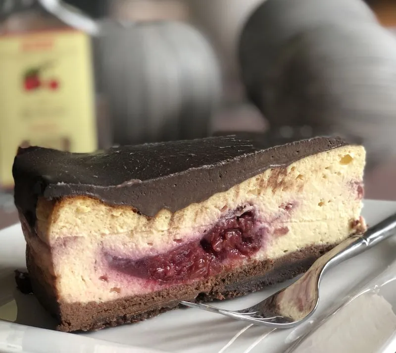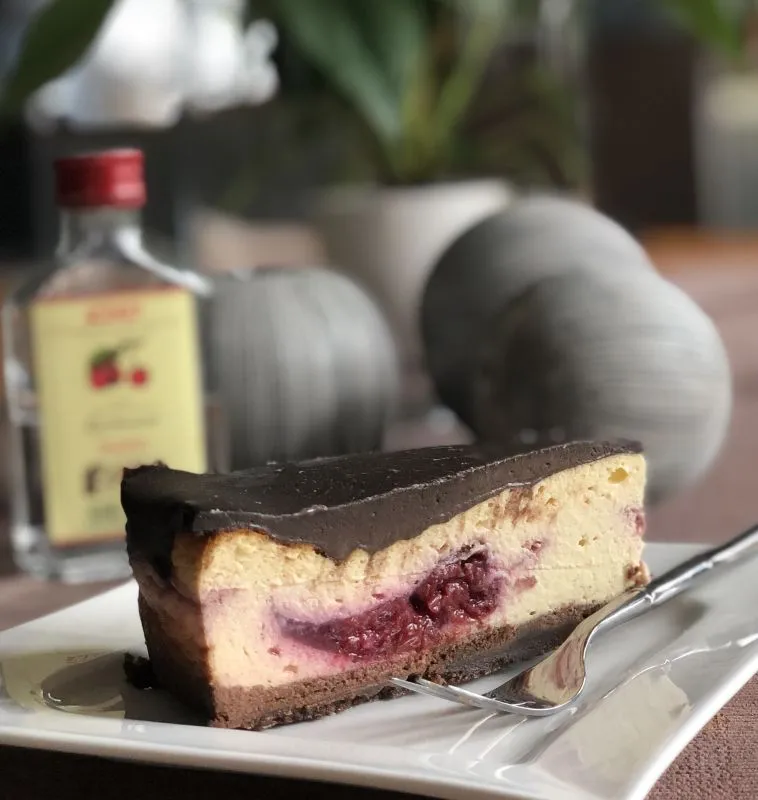 Ein Käsekuchen mit schokoladigem Keksboden und einer Fülle aus Kirschen mit etwas Kirschwasser und einer Käsemasse! Getoppt mit viel Schokolade! Sooooo lecker!