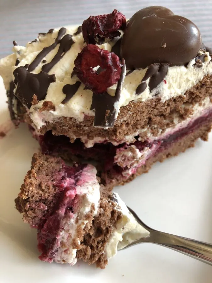 Eine Schwarzwälder Kirschtorte mit herrlichem Zimt-Nussboden! Ein absoluter Traum in lowcarb!