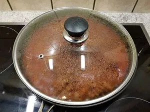 • Die passierten Tomaten zugeben, mit Pizza Pizza! würzen und mit geschlossenem Deckel ca. 20 min bei schwacher Hitze köcheln lassen. In der Zwischenzeit die Spaghetti zubereiten.