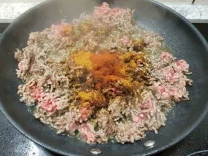 • Das Hackfleisch in Butterschmalz anbraten und mit Salz, Hackfleisch Liebling und Taco & Salsa würzen.
