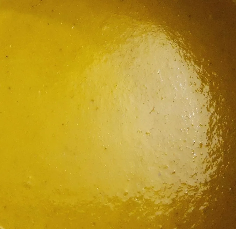 - In einem Topf Ghee schmelzen und das Gemüse scharf anbraten, mit 450 ml Gemüsebrühe aufgießen und das Gemüse langsam weich dünsten. Wenn das Gemüse weich ist, mit dem Pürierstab pürieren. Restliche Gemüsebrühe aufgießen, würzen und einköcheln lassen.