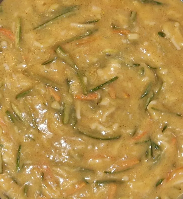 - Eier, Milch mit einem Schneebesen verquirlen, Pfannkuchen & Waffel Teig hinzufügen und gut klumpenfrei verrühren. Den Suppentraum unterrühren und zuletzt die Spargel Möhrenmischung. Gut durchgerührt 15 Minuten rasten lassen.