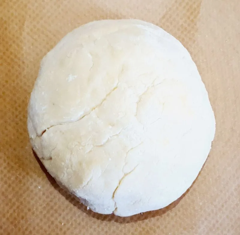 - Aus Mandelteig, Ei, flüssiger Butter, Wasser und Salz einen Teig zubereiten und 15 Minuten ruhen lassen.
