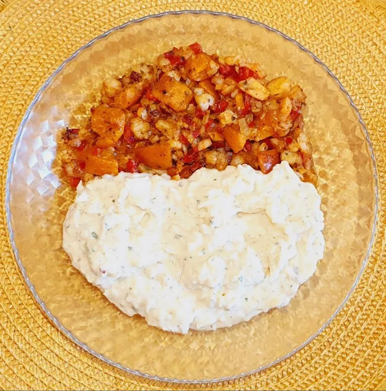 - Die abgekühlte Shrimpsmasse unterheben. Abschmecken ob gewürzt so passt, und/oder nachwürzen.