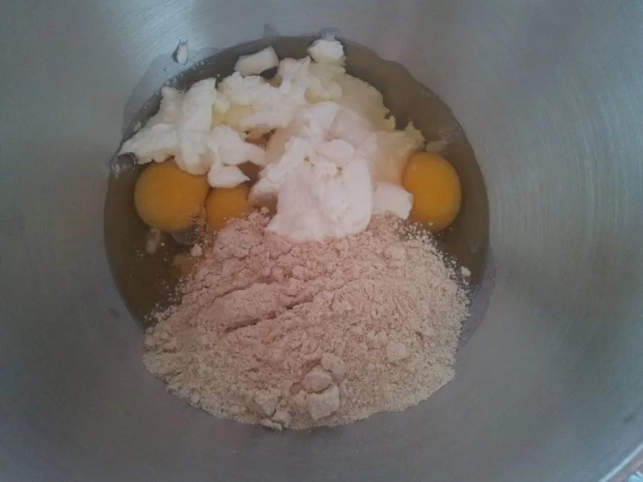 Die Eier mit Quark und Kuchenzauber verrühren. Den Teig ca. 5 min ruhen lassen.