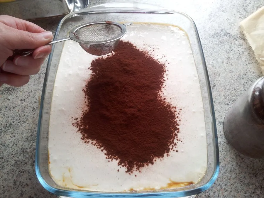 Mit Backkakao bestäuben und mindestens 2 Stunden (besser über Nacht) kaltstellen.