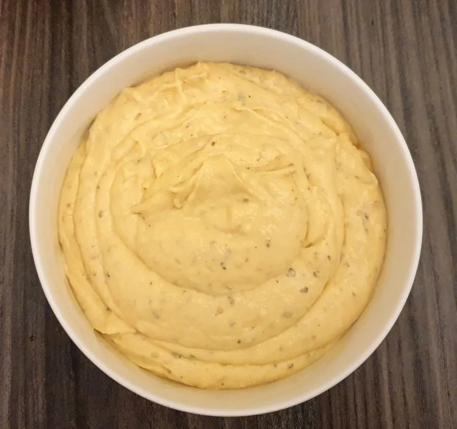 • Eier, Quark, gepressten Knoblauch und Gewürze miteinander glatt vermengen. Mandelstaub und Mandelteig unterheben. Abschmecken ob es gewürzt so passt.