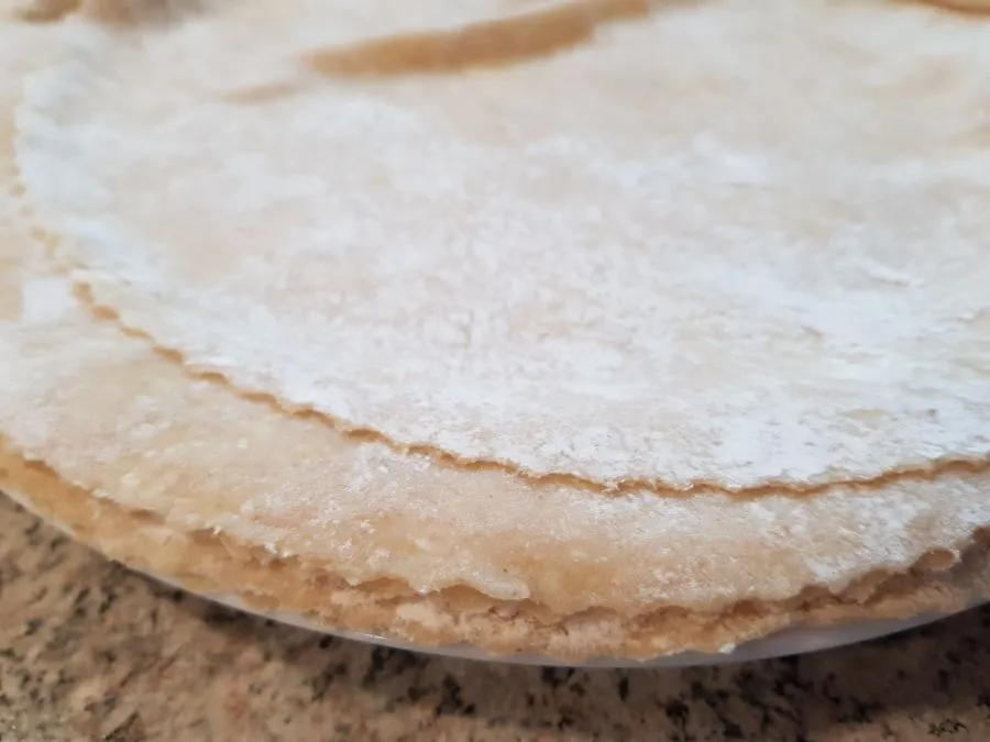 - Jeden Teigfladen von beiden Seite großzügig mit Bambusfaser bemehlen. Eine saubere Arbeitsfläche mit Bambusfaser bestreuen und den Teig mit einem Nudelholz ausrollen, dabei mehrfach wenden und erneut mit Bambusfaser bemehlen. Pro Tortilla werden ca. 4 - 5 g Bambusfaser (ca. 2 EL) benötigt.