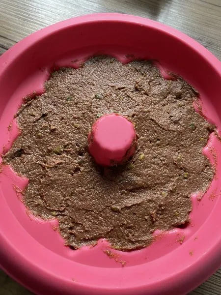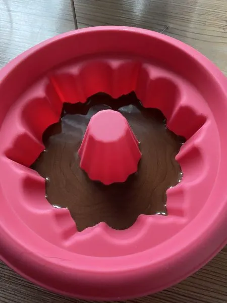 - 90% der Schokolade in die Guglhupf-Form füllen.