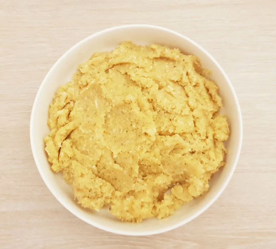 - Zwiebel von der Schale entfernen und klein schneiden. Zwiebel blanchieren, das ist wichtig, so wird die Zwiebel nicht bitter. Nach dem Blanchieren abgießen, in einen Multizerkleinerer füllen und zu Püree zerkleinern. Das Püree 2x durch ein Sieb streichen und die Flüssigkeit vom Püree wegleeren. Das Püree in eine Schüssel füllen. Hartkäse reiben und hinzufügen, sowie Zitrusfaser und Gewürze. Kosten ob es gut gewürzt ist, eventuell nachwürzen.