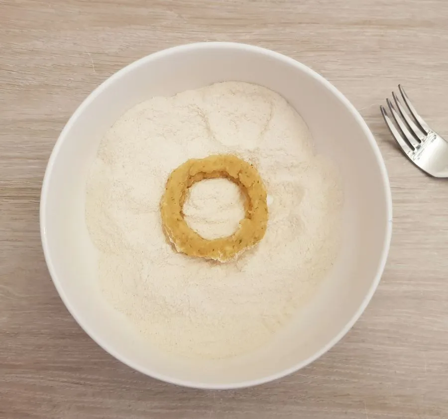 - Schneidebretter, die in den Gefrierschrank passen, vorbereiten, Mit Frischhaltefolie einwickeln. Die Zwiebelmasse im einen Spritzsack ohne Tülle füllen, vorne etwas abschneiden und Ringel spritzen, nicht zu dünn. Ich hab 15 Ringe gespritzt. Die Ringe ins Gefrierfach geben und gut 3h durchfrieren lassen.