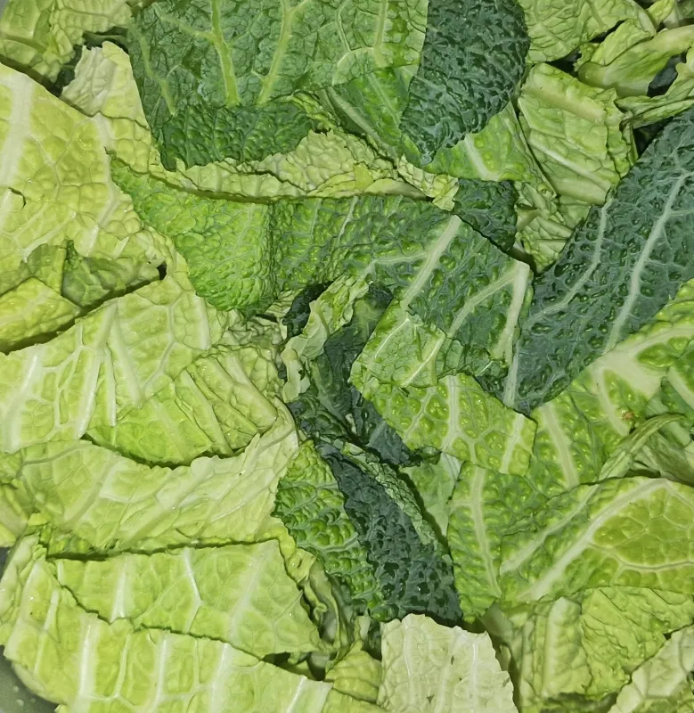 - 400 g Wirsing blanchiert (ungeputzt ca. 550g)